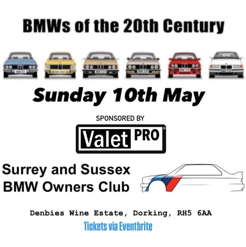 Event: BMWs of the 20th Century Hosted by: Surrey and Sussex BMW Owners Club Date: Sunday 10th May 2026 Venue: Denbies Wine Estate, London Road, Dorking, Surrey, RH5 6AA Gates Open: 10:00 AM Tickets: Available via Eventbrite