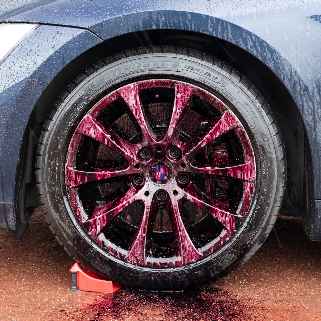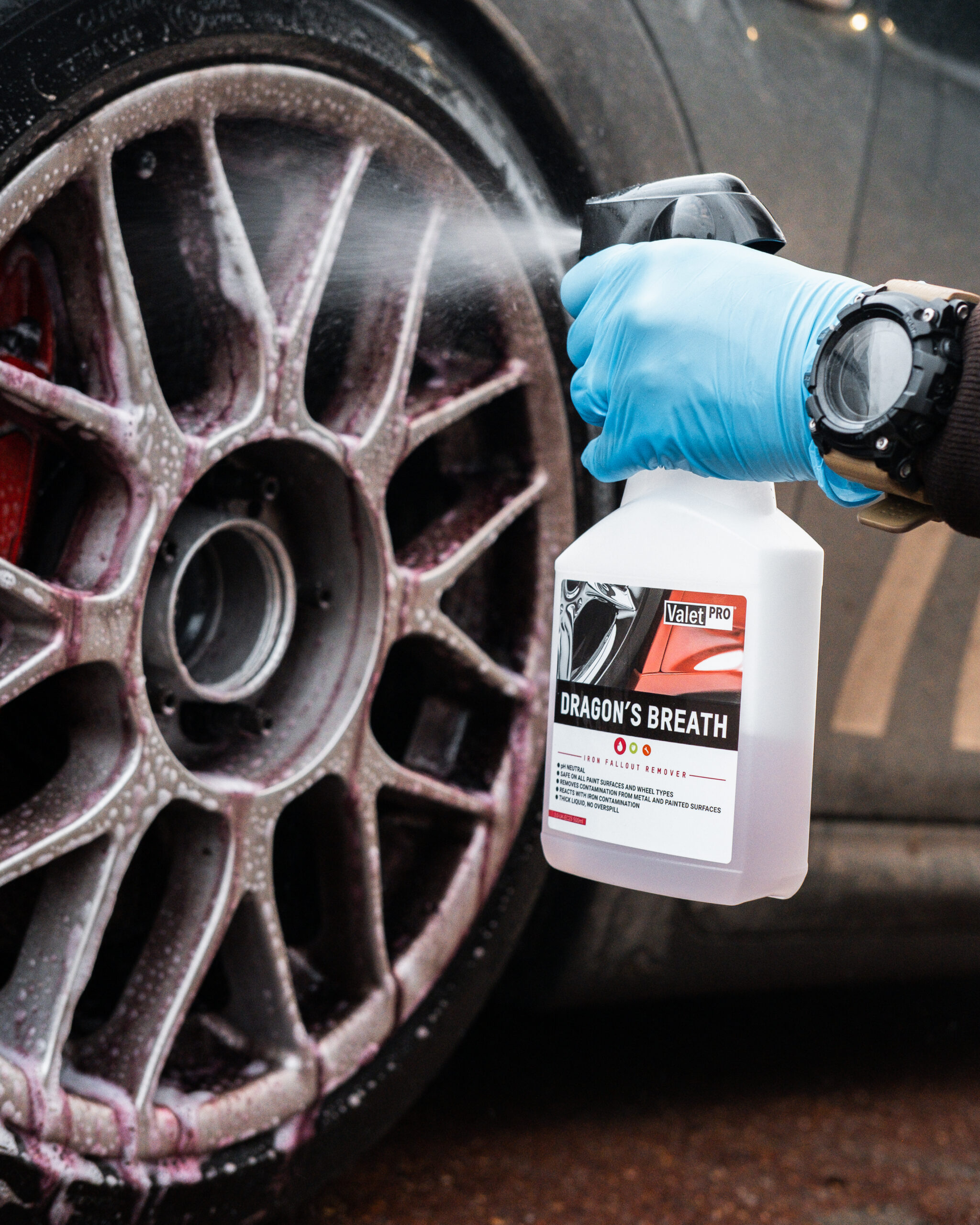 Unlike traditional wheel cleaners, Dragon’s Breath performs a chemical decontamination stage, making it safe for wheels, paintwork, and delicate finishes.